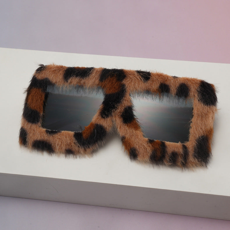 Plush Fuzzy Glasses Leopard Party Sunglasses